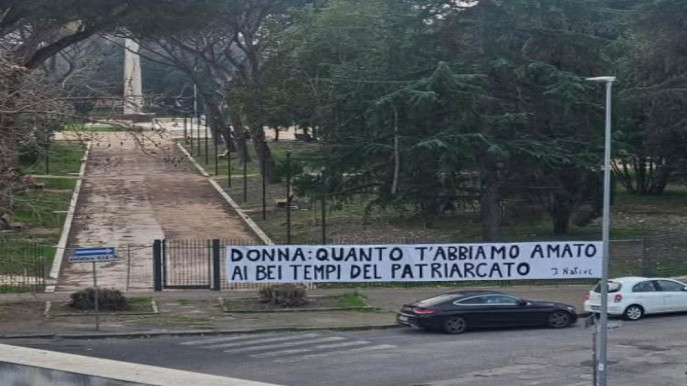 LATINA - Nella cattolicissima Latina compare uno striscione che ricorda i bei tempi degli uomini con le donne nel periodo del patriarcato.