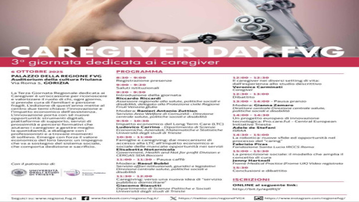 Si terrà a Gorizia lunedì 6 ottobre, presso il palazzo della Regione, la Terza Giornata Regionale dedicata ai caregiver, intitolata Caregiver Day FVG. Dopo la registrazione delle presenze alle 8.30, i lavori si apriranno alle 9.00 con i saluti istituzionali e l’intervento dell’assessore alla salute Riccardo Riccardi, seguito da un ricco programma di contributi. L’evento rappresenta un momento di riconoscimento e valorizzazione per chi si dedica quotidianamente alla cura di familiari e persone fragili. L’edizione di quest’anno pone al centro due temi fondamentali: innovazione e impatto economico dell’assistenza. Da un lato, strumenti digitali, piattaforme di supporto, servizi di prossimità e percorsi formativi possono facilitare la vita dei caregiver, favorendo il dialogo con i professionisti e offrendo spazi di sollievo; dall’altro, emerge con chiarezza il peso economico del loro lavoro, un impegno che sostiene il sistema sociale attraverso dedizione e sacrificio. Le iscrizioni, gratuite, sono ancora aperte e disponibili online sulla pagina della Regione FVG al link http://bit.ly/4ptRIjY.