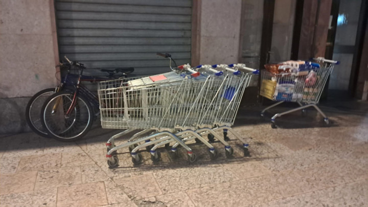 MONFALCONE - Fiera di carrelli abbandonati in piazza Cavour di fronte l'ingresso della galleria d'arte contemporanea.