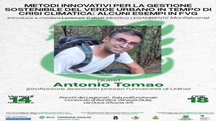Nel quadro degli incontri dedicati ai temi ambientali e alla qualità della vita, Legambiente Monfalcone presenta il secondo appuntamento della rassegna “Il Nostro Futuro Comune”, intitolato “Metodi innovativi per la gestione sostenibile del verde urbano in tempo di crisi climatica: alcuni esempi in FVG”. L’iniziativa mette al centro le sfide poste dal cambiamento climatico alla progettazione e manutenzione degli spazi verdi, con l’obiettivo di ragionare su soluzioni capaci di rendere le città più resilienti ed efficienti dal punto di vista ecologico. A guidare l’approfondimento sarà Antonio Tomao, professore associato dell’Università di Udine, che proporrà esempi concreti di tecniche e buone pratiche sperimentate in Friuli Venezia Giulia. L’incontro si terrà venerdì 14 novembre alle ore 18.00 a Ronchi dei Legionari, nella sala polifunzionale del Consorzio di Bonifica Venezia Giulia in via Duca d’Aosta 3/5. L’introduzione e la moderazione saranno affidate a Lorenzo Calisti, membro del direttivo di Legambiente Monfalcone. L’evento è realizzato con il contributo del Consiglio regionale FVG e della BCC Venezia Giulia, in collaborazione con l’associazione culturale “Leali delle Notizie” e con il patrocinio dei Comuni di Monfalcone, Ronchi dei Legionari e Staranzano. Una nuova occasione per riflettere, insieme a esperti e cittadini, su come le città possano ripensare il proprio verde urbano per affrontare in modo più efficace le conseguenze della crisi climatica.