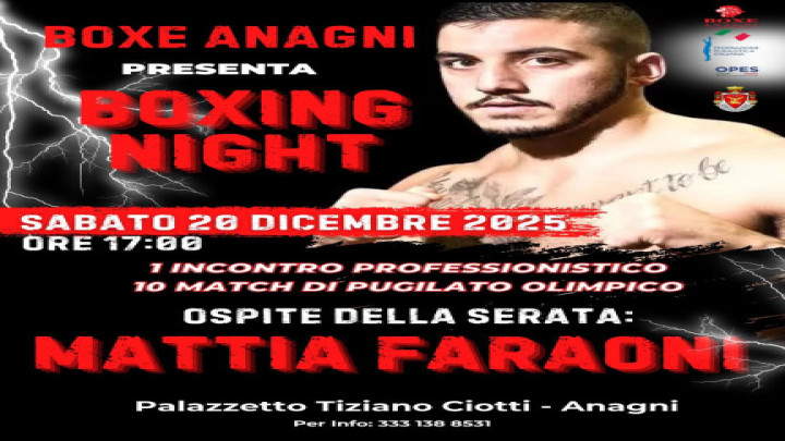 Premesso che la promozione di attività a carattere sportivo e sociale organizzate da soggetti pubblici o privati, con ricaduta positiva sul proprio territorio, rientra tra le funzioni e gli obiettivi dell’Amministrazione Comunale, la giunta comunale in data 3 dicembre 2025 ha deliberato l'accoglimento della richiesta di contributo da parte della A.S.D. Boxe Anagni per l’organizzazione e realizzazione dell’evento denominato “Riunione Pugilistica”, che si terrà il giorno 20 dicembre 2025, presso il Palazzetto dello Sport