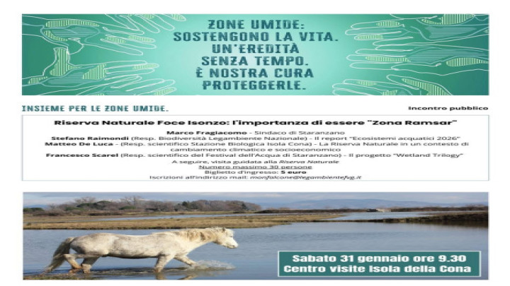 La Giornata Mondiale delle Zone Umide (World Wetlands Day), istituita nel 1997, rappresenta un’occasione fondamentale per accrescere la consapevolezza sull’importanza di questi ecosistemi, cruciali per la conservazione della biodiversità e oggi fortemente minacciati dalle attività umane. La ricorrenza cade il 2 febbraio, data che ricorda la sottoscrizione della Convenzione internazionale di Ramsar, avvenuta nel 1971 nell’omonima città iraniana, primo trattato globale dedicato alla tutela e alla gestione degli ecosistemi naturali. In questo contesto, il circolo “Ignazio Zanutto” di Legambiente Monfalcone organizza per sabato 31 gennaio, insieme al Comune di Staranzano e in collaborazione con il “Festival dell’Acqua”, un incontro pubblico al centro visite della Riserva Naturale Foce Isonzo. L’iniziativa è dedicata a celebrare la recente designazione della Riserva come “Sito Ramsar”, riconoscimento internazionale che ne valorizza ulteriormente il ruolo ambientale e naturalistico. All’incontro seguirà una visita guidata all’Isola della Cona. La partecipazione all’appuntamento pubblico è libera e aperta a tutti, mentre per la visita guidata è previsto un numero massimo di 30 partecipanti ed è necessaria la prenotazione scrivendo all’indirizzo monfalcone@legambientefvg.it.