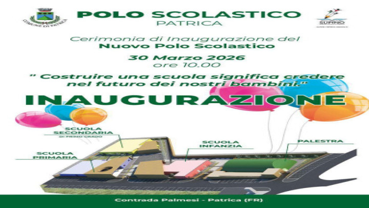 Sarà inaugurato lunedì 30 marzo alle ore 10 il nuovo polo scolastico realizzato in contrada Palmesi a Patrica, una struttura che riunirà in un unico complesso la scuola dell'infanzia, la scuola primaria e la scuola secondaria di primo grado. L'intervento rappresenta uno dei più importanti investimenti pubblici realizzati nel comune e punta a diventare un punto di riferimento per la comunità e per le future generazioni. Il sindaco Lucio Fiordalisio ha sottolineato come la nuova struttura, grazie agli spazi moderni progettati per studenti e docenti, abbia già consentito l'avvio di numerose attività e progetti didattici. Secondo il primo cittadino l'opera è il risultato di anni di lavoro, progettazione e complessi iter amministrativi e rappresenta il più significativo investimento pubblico mai realizzato sul territorio comunale. Il nuovo polo scolastico è stato concepito non solo come insieme di edifici destinati all'istruzione, ma come un luogo di incontro, socializzazione e inclusione capace di garantire continuità educativa e ampliare l'offerta formativa per bambini e ragazzi. L'amministrazione comunale ha evidenziato che l'investimento nella scuola costituisce una scelta strategica per il futuro della comunità, con l'obiettivo di mettere al centro giovani e famiglie e di garantire un'istruzione sicura e qualificata in grado di rispondere alle sfide educative dei prossimi anni.