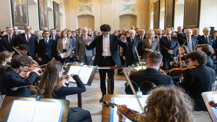 A Praga il Sergio Mattarella ha partecipato a una speciale mattinata musicale presso il Monastero di Strahov, assistendo al concerto dell'ensemble Armonia Europea insieme al Petr Pavel; protagonisti dell'evento sono stati i giovani musicisti dell'Orchestra Giovanile Italiana e della Česká studentská filharmonie, diretti da Amedeo Ara, in un programma che ha unito simbolicamente Italia e Repubblica Ceca attraverso gli inni nazionali - "Il Canto degli Italiani" di Michele Novaro e "Kde domov můj" di František Škroup - e brani di grande raffinatezza come il Concerto madrigalesco RV 129 di Antonio Vivaldi e la Suite VI/2 per archi di Leoš Janáček; l'ensemble, composto da archi selezionati della Scuola di Musica di Fiesole e da giovani musicisti cechi, ha offerto un'esecuzione apprezzata per qualità e coesione, tanto che al termine il Presidente Mattarella si è intrattenuto con i ragazzi, complimentandosi per il livello artistico e lo spirito di collaborazione; la sovrintendente Anna Maria Meo ha evidenziato il valore dell'iniziativa come esempio concreto del linguaggio universale della musica capace di unire culture diverse, mentre l'evento - promosso dall'Istituto Italiano di Cultura di Praga con il patrocinio dell'Ambasciata d'Italia - proseguirà nel pomeriggio con un secondo concerto al Conservatorio di Praga.